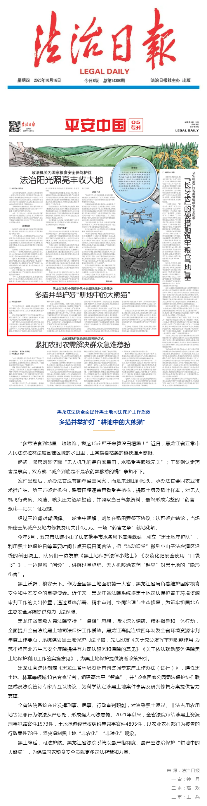 《法治日报》报道 黑龙江法院全面提升黑土地司法保护工作多措并举护好“耕地中的大熊猫”