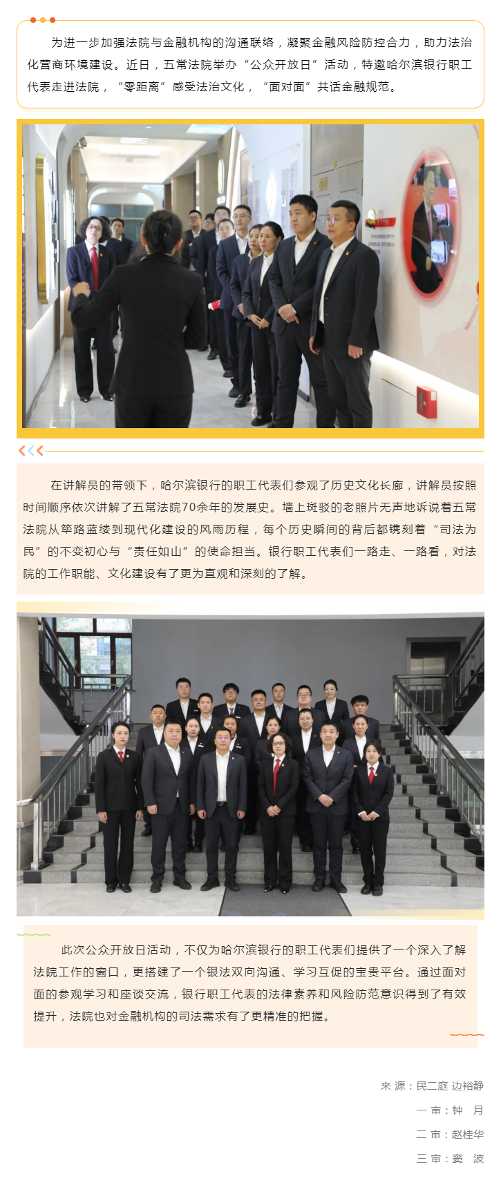 【第193次公众开放日】银法互动促规范 交流互鉴共发展——哈尔滨银行职工代表走进五常法院