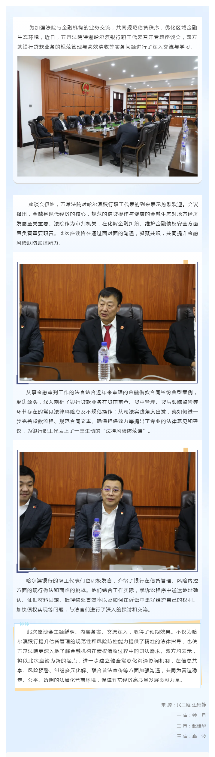 加强业务指导 防范金融风险——五常法院与哈尔滨银行召开业务专题座谈会
