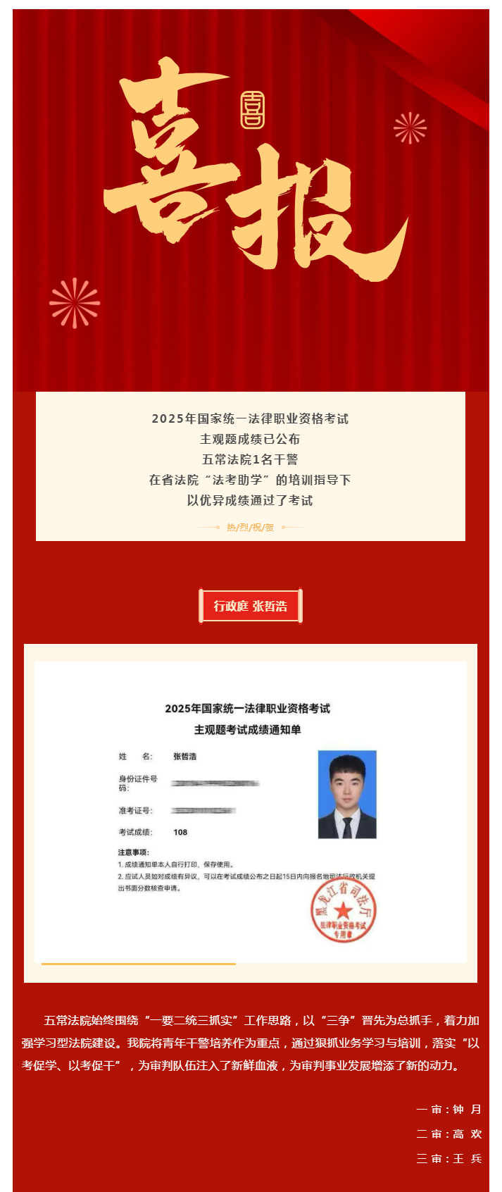 喜报 五常法院1名干警通过2025年国家统一法律职业资格考试
