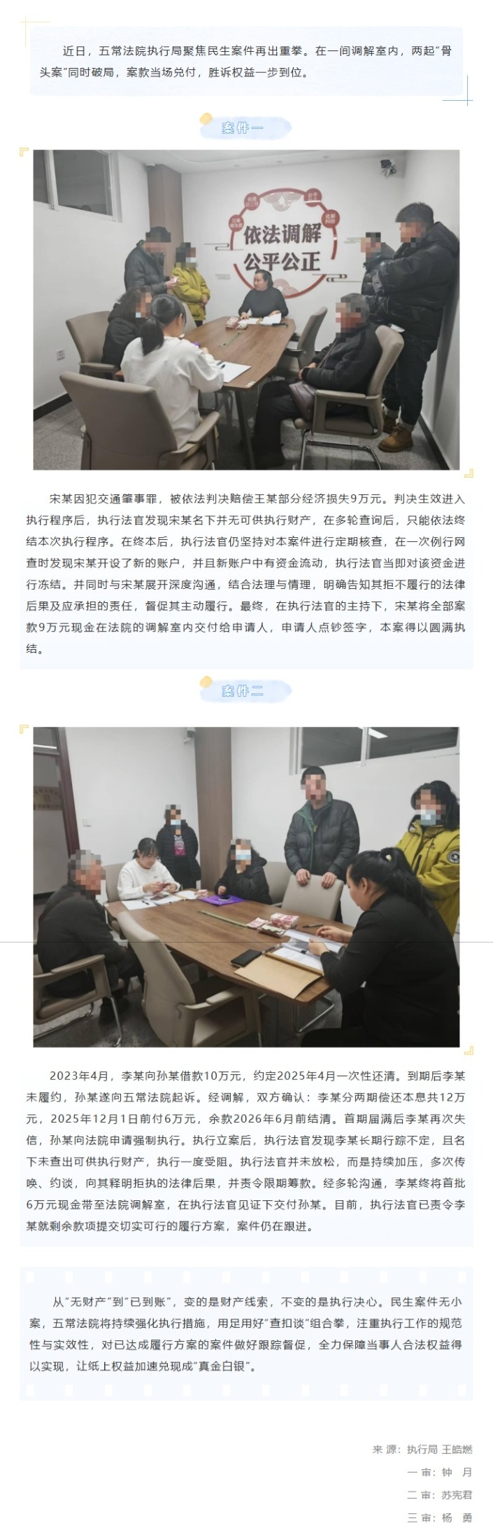 【执守民生】一间调解室化解两起纠纷 法院现场发放执行案款护权益