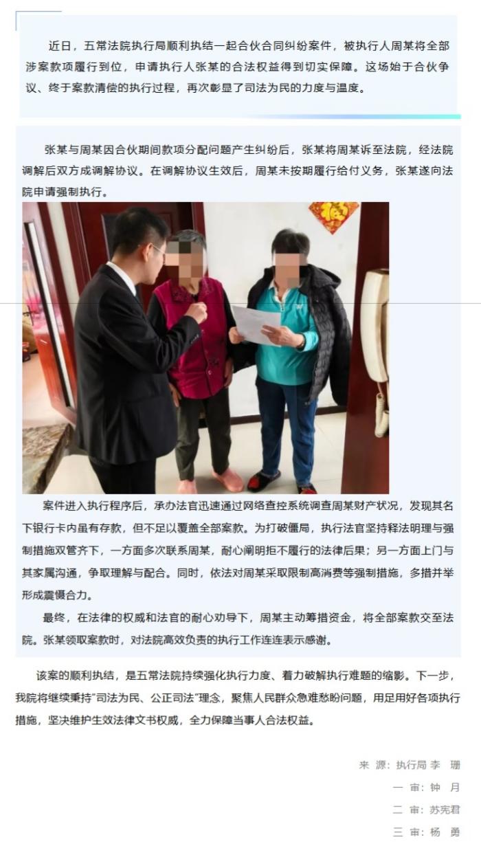 【执守民生】查控劝导多措并举 五常法院高效执结涉合伙合同纠纷案件