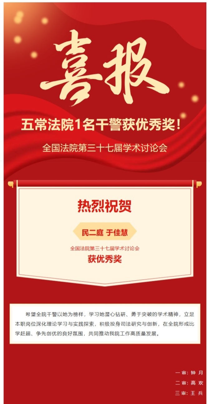 喜报!五常法院1名干警在全国法院第三十七届学术讨论会获奖!